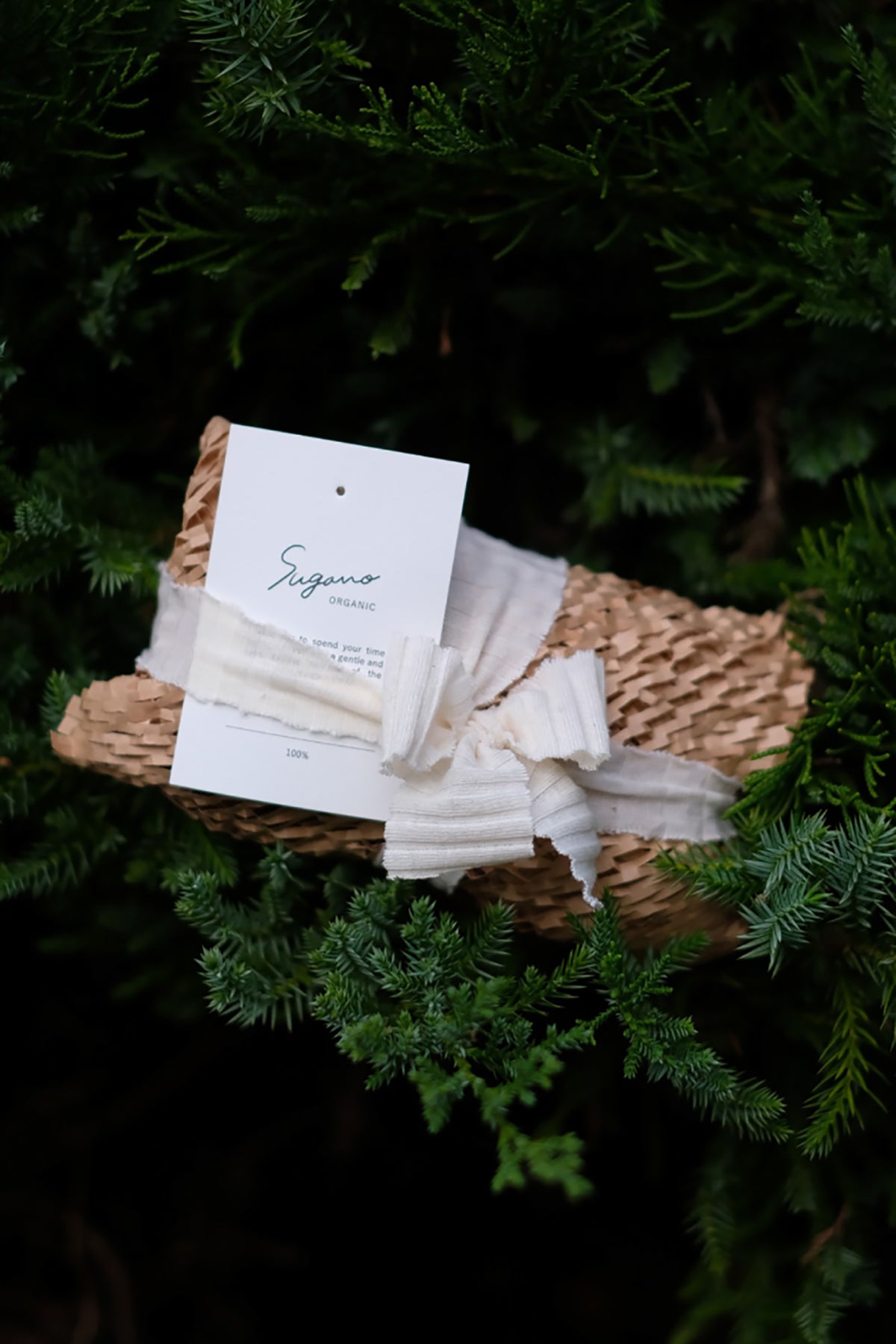 「健やかで心穏やかにすごす」そんな大切な人を想う気持ちをギフトにのせて贈れるよう、ギフトラッピングをご用意いたしました。ラッピング包装には土に還る素材を使用。肌着と同じオーガニックコットンのリボンは白・茶・緑の3色からランダムにお選びいただけます。日頃の感謝の気持ちを添えられるよう、オリジナルのメッセージカード付き。大切な方や自分自身へのプレゼントに心地良いオーガニックコットンを